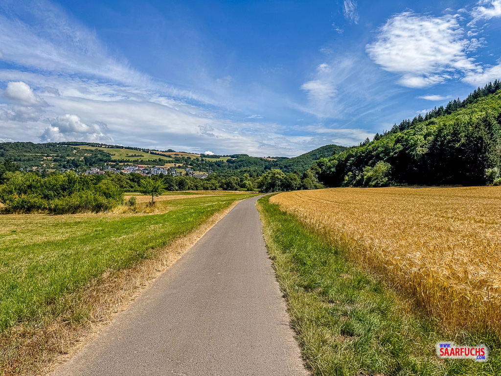 Hinter dem Ort fahre ich parallel zu einer kleinen Landstraße leicht wellig bis zum nächsten Ort.
