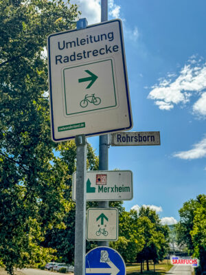 Dort wird scheinbar gerade die Hauptstraße umgebaut, weshalb der Nahe-Radweg zu dieser Zeit umgeleitet wird. Die Umleitung ist gut ausgeschildert.