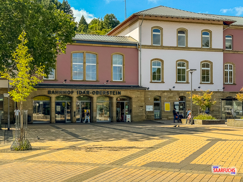Nach meiner Anreise mit dem Regionalexpress stehe ich um Punkt zehn Uhr vor dem Bahnhof in Idar-Oberstein. Unmittelbar vor dem Bahnhofsplatz läuft der überwiegend gut beschilderte Nahe-Radweg vorbei.