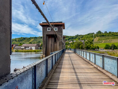 Über die Pouilly-Brücke quere ich die Nahe. Da hier Radfahren verboten ist, schiebe ich mein Fahrrad.