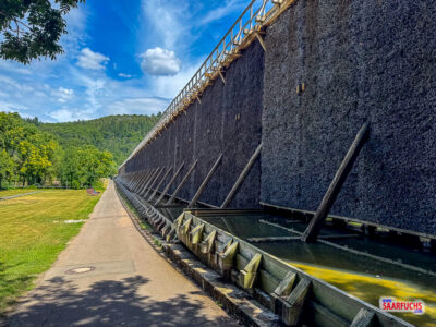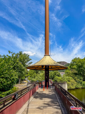 Kurz hinter Niederhausen biege ich nach rechts ein und fahre über die wackeligen Holzbohlen der Bücke des Wasserkraftwerks.