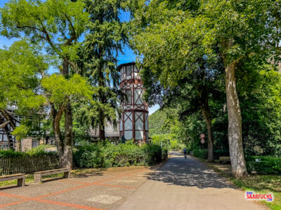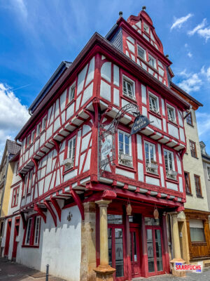 Der Nahe-Radweg führt mich in die Altstadt, in der sich historische, schiefergedeckte Häuser befinden. Die Kirner Altstadt blickt auf eine lange Geschichte zurück, die bis ins Mittelalter reicht. Ursprünglich als Festungsstadt mit Burg und Stadtmauer angelegt, entwickelte sie sich im 19. Jahrhundert zu einem Zentrum der Lederindustrie. Davon zeugen noch heute die gut erhaltenen historischen Gerberhäuser.
