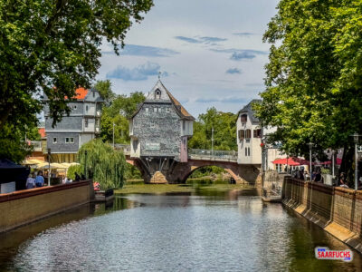 Der Radweg führt mich jetzt auf direktem Wege in die historische Altstadt. Da kurz vor den Brückenhäusern eine Kirmes stattfindet, muss ich mir eine Umgehung suchen, da dieses Mal keine Umleitung ausgeschildert ist.