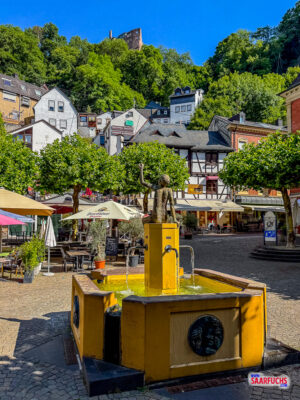 Kurze Zeit später stehe ich schon auf dem Marktplatz am Brunnen. Dort löse ich den Labcache Historischer Spaziergang durch Oberstein : S1 Obersteiner Marktplatz, für den ich bei meiner Wanderung über die Traumschleife Nahe-Felsen-Weg keine Zeit mehr hatte.