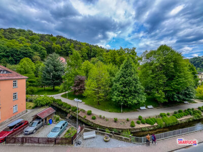 Von unserem Balkon ist der gegenüberliegende Kurpark gut zu sehen.
