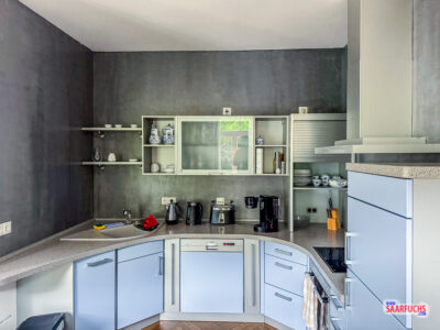 Die Küche ist ebenfalls groß und gut ausgestattet. Ein Geschirrspüler und ein Backofen sind vorhanden.