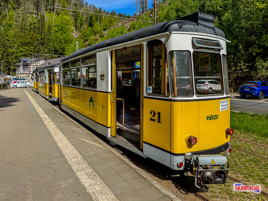 Die Straßenbahn nutzen wir gleich zweimal, um zum Startpunkt unserer Wanderungen zu gelangen. Das ist ganz praktisch, da die Parkplätze im Kirnitzschtal recht knapp sind. Den Fahrplan der Straßenbahn findet ihr im Internet.