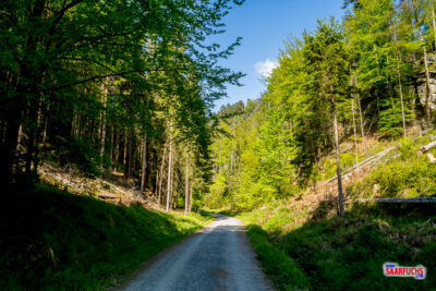 Am Ende der Stiege biegen wir links in den Reitsteig ein. Diesem breiten Forstweg folgen wir weiter bis zum Aussichtspunkt, der uns einen tollen Blick auf die neue Wentzelwand bietet.