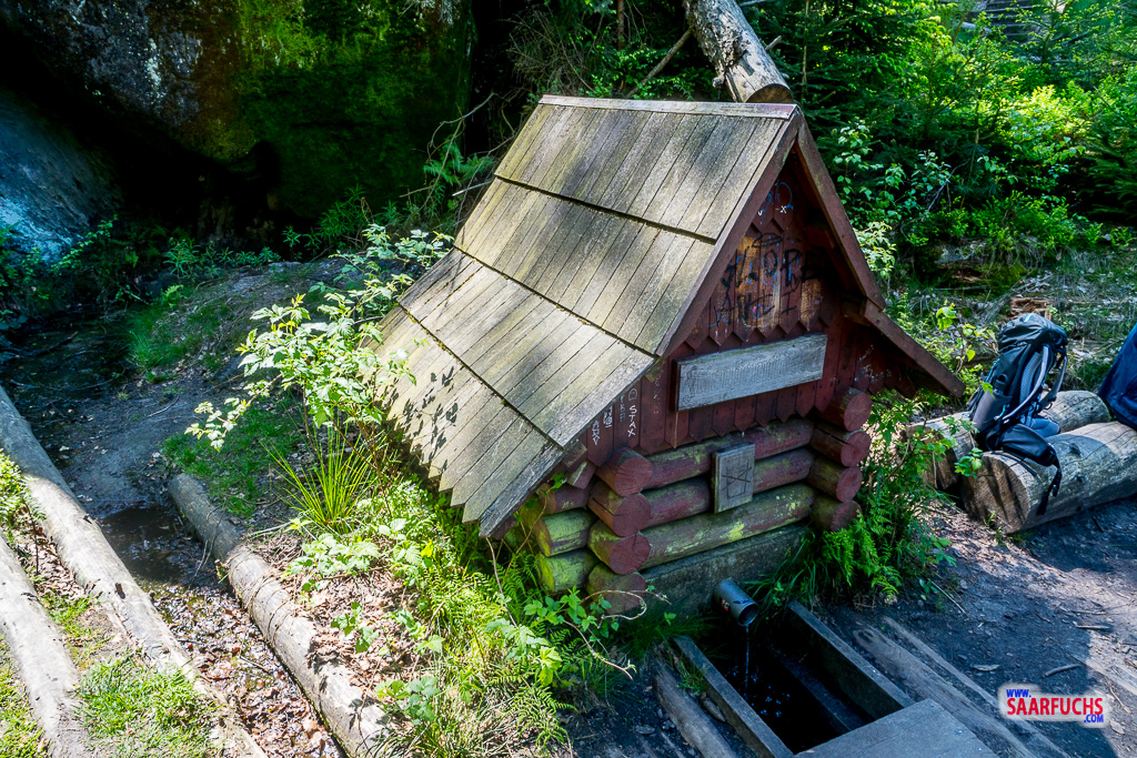 Gute zwanzig Minuten benötigt die Gruppe für den Aufstieg bis zum Friensteinflössel, einer kleinen eingefassten Quelle.