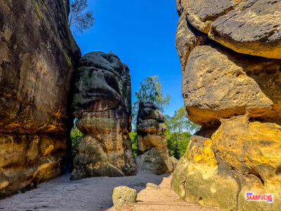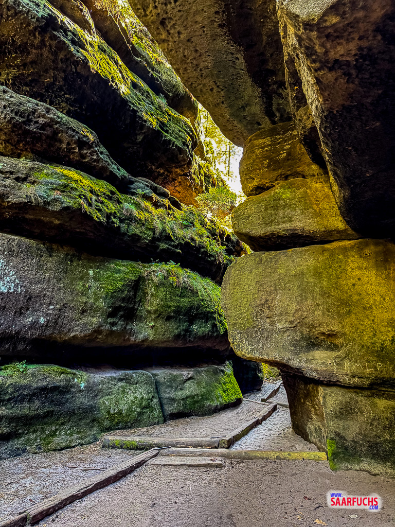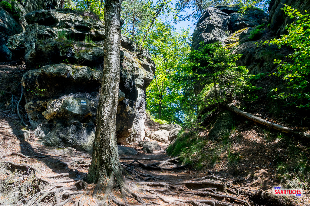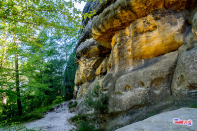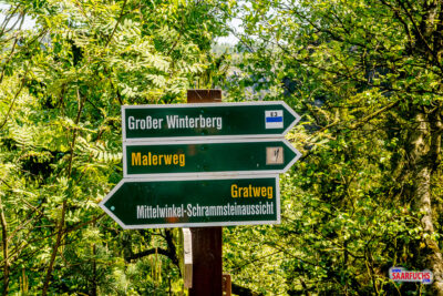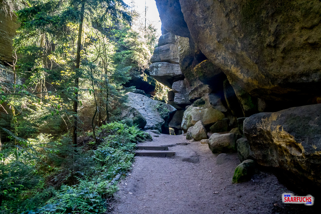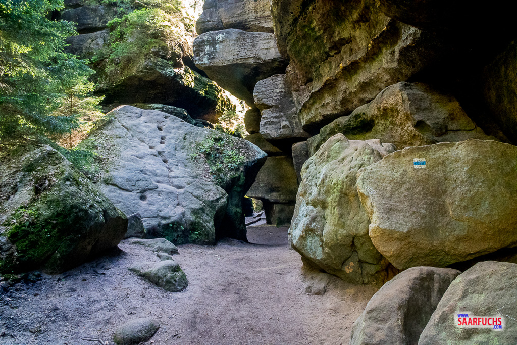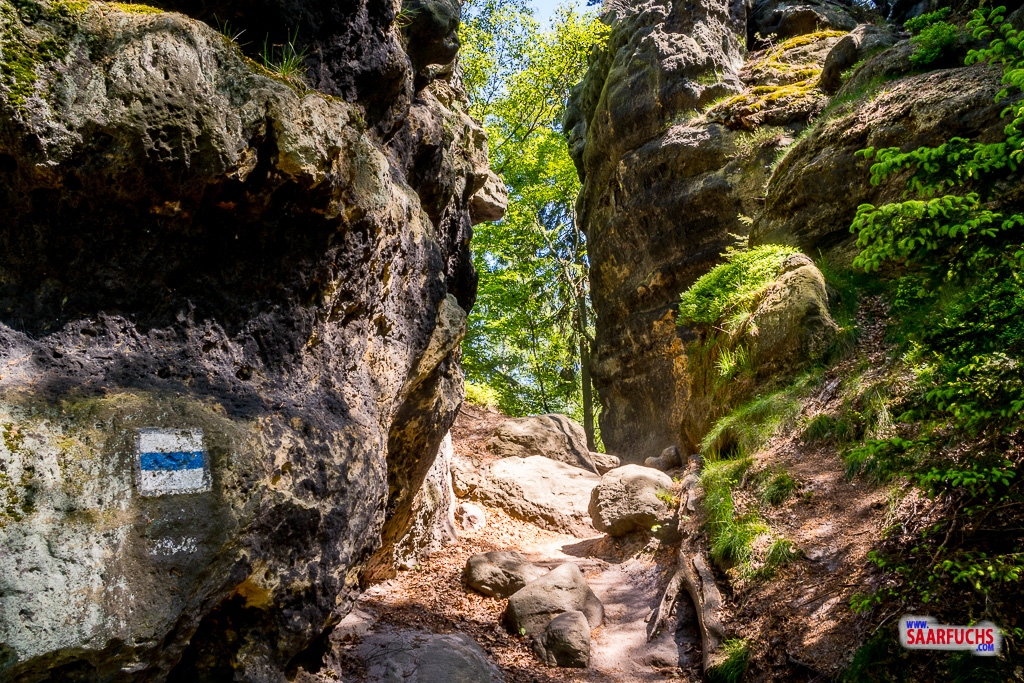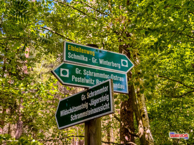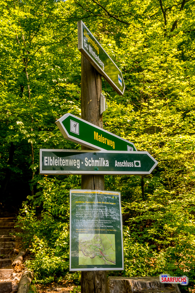 Anschließend gehen wir zum Wanderweg zurück und folgen den Markierungen in Richtung der Schrammsteine.