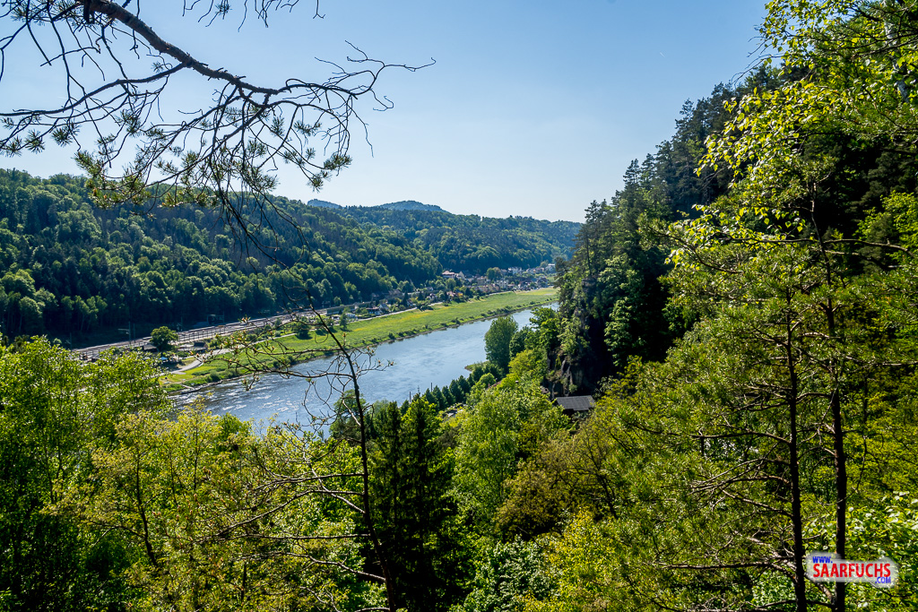 Für die 1,5 Kilometer bis zum Aussichtspunkt benötigen wir fast eine Stunde und viel Kraft. Der Aussichtspunkt ist recht zugewachsen, die Elbe ist gerade noch so zu sehen.