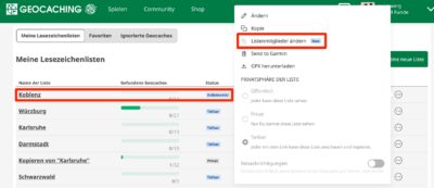 NEU: Kollaborative Bookmarklisten auf geocaching.com