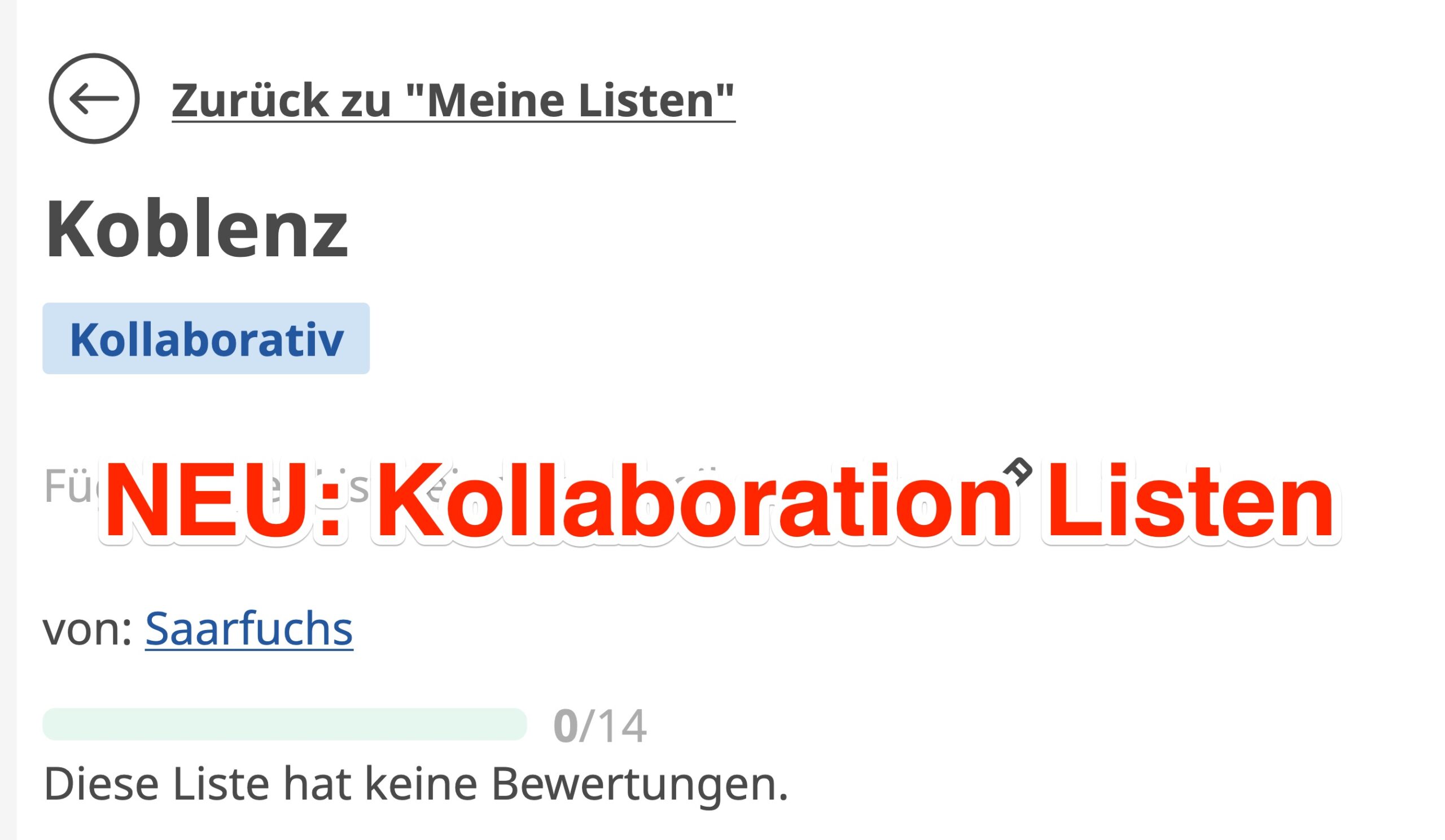 Gehe ich nun wieder zurück in die Listenübersicht, so sehe ich auch dort jetzt den neuen Typ „kollaborativ“ und die Liste wurde von „privat“ auf „teilbar“ geändert.