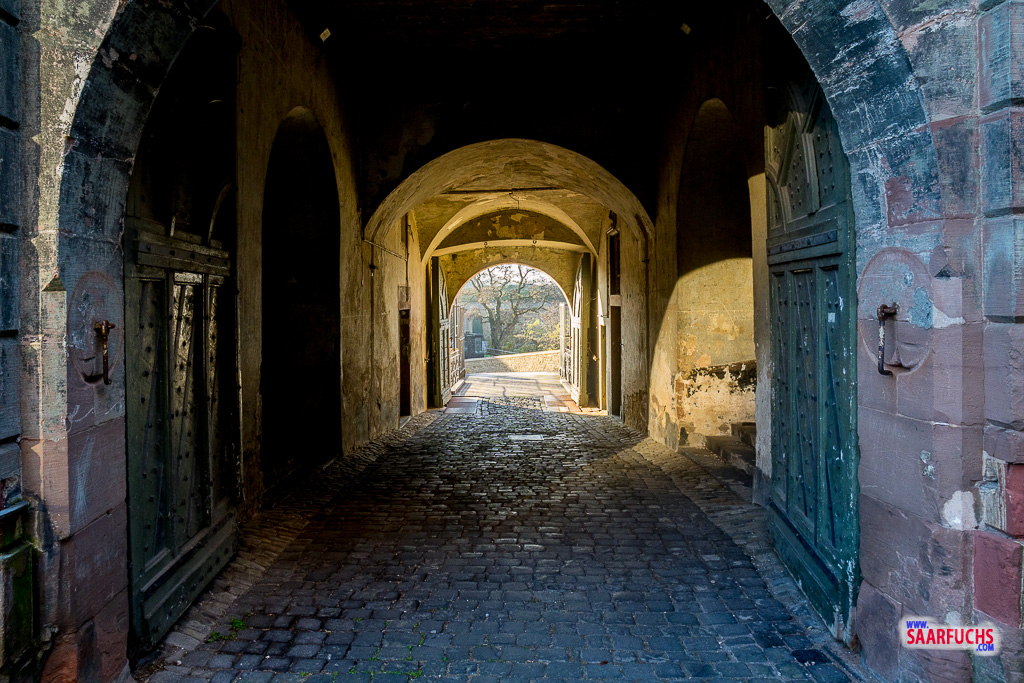 Auf der anderen Seite angekommen, drehe ich mich um und blicke zurück. Jetzt stehe ich auf der Außenseite und habe den Blick, den damals mögliche Angreifer hatten. Von der Seite sieht es doch recht furchteinflößend aus, findet ihr nicht?