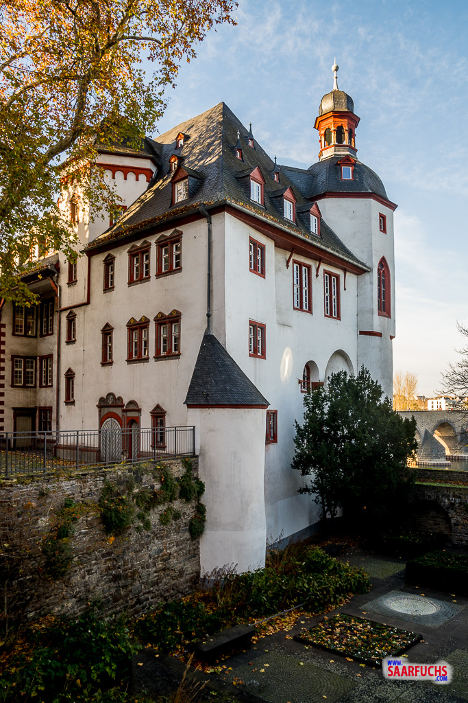 Nachdem ich wieder am Rheinufer angekommen bin, laufe ich zurück zum Kurfürstlichen Schloss, wo ich im Garten den Virtual UNESCO-Welterbe – Kurfürstliches Schloss Koblenz logge.