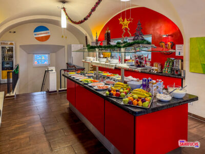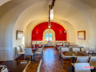 Der Speisesaal ist groß und schön weihnachtlich dekoriert. Alle Gäste haben einen festen Sitzplatz, der über ein Namensschild am Tisch gut zu finden ist.