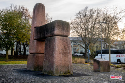 Nachdem ich über zwei weitere Weihnachtsmärkte gelaufen bin und mir dort einen Glühwein gönne, laufe ich nach Süden, in den etwas neueren Teil von Koblenz. Am Mahnmal für die Opfer des Nationalsozialismus logge ich den Tradi Gestapo-Zentrale.