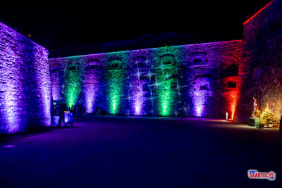 Anschließend gehe ich weiter zum oberen Schlosshof, wo der Christmas Garden beginnt. Da sich die Jugendherberge innerhalb der Festung befindet, kann ich auch über den Christmas Garden laufen, ohne durch eine Ticketkontrolle zu müssen. Während der Veranstaltung, die in diesem Jahr vom 20.11.25 bis 04.01.26 stattfindet, ist die Festung Ehrenbreitstein besonders eindrucksvoll beleuchtet.