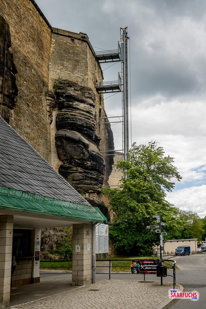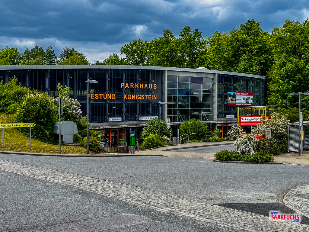 Es gibt mehrere Möglichkeiten, die Festung zu erreichen. Da wir am Morgen auf den Lilienstein gewandert waren, fahren wir mit dem Auto und stellen es im großen kostenpflichtigen Parkhaus ab.