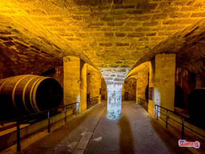 Unten angekommen, schauen wir uns ein paar noch vorhandene Weinfässer an.