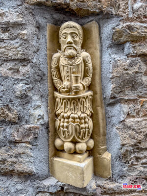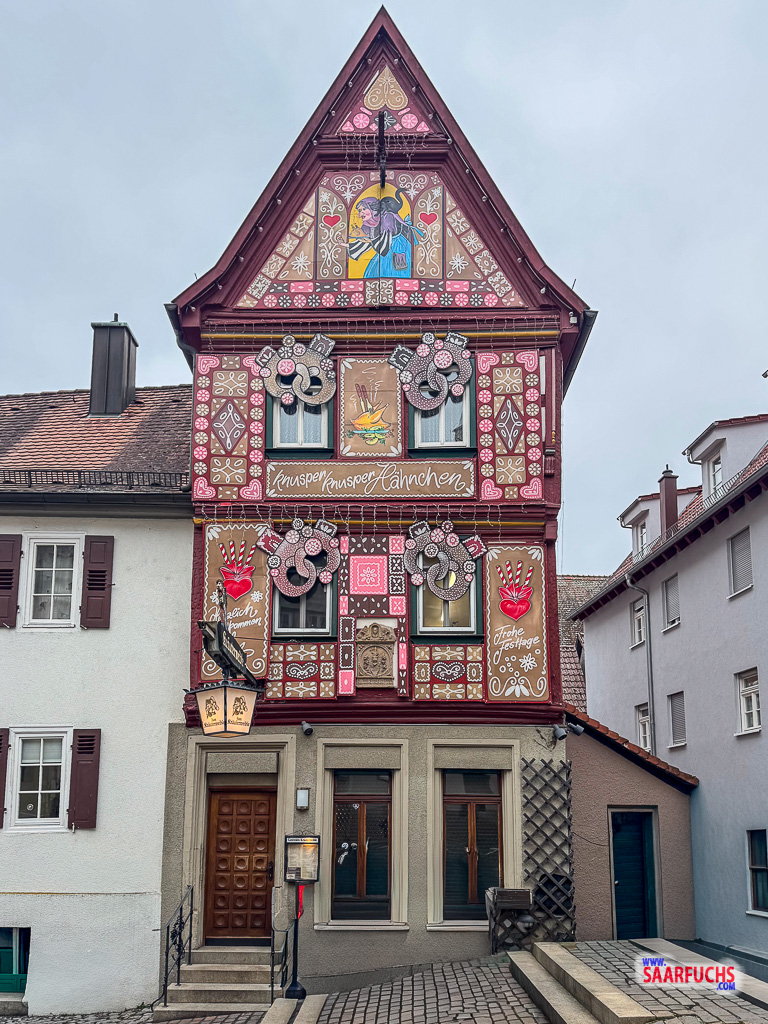 Dort, wo die Gasse in einen Platz mündet, steht dieses besondere Haus, welches unten so schmal ist, dass nur ein einziges Fenster Platz hat. Soweit ich weiß, ist das eine für das Mittelalter typische Bauweise, da damals die Steuern nach der Hausbreite erhoben wurden.