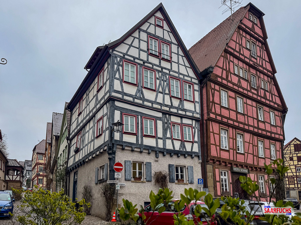 Vom Löwenbrunnen gehe ich durch die Neutorstraße und die Langgasse bis zur Klostergasse. Unterwegs komme ich an einigen besonderen Fachwerkhäusern vorbei.