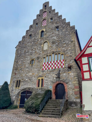 Kurz vor dem Turm komme ich am Steinhaus vorbei. Das um 1200 errichtete Steinhaus ist der größte erhaltene Wohnturm der staufischen Kaiserpfalz. Im Mittelalter diente er als repräsentativer Wohnbau für die kaiserliche Familie. Heute beherbergt das historisch bedeutsame Gebäude das Museum der Stadt Bad Wimpfen. Dort können Kulturbegeisterte spannende Exponate zur Stadtgeschichte sowie archäologische Funde aus der Stauferzeit entdecken.