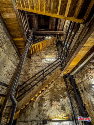 Damit bin ich einmal um den Turm gelaufen und steige anschließend wieder hinunter.