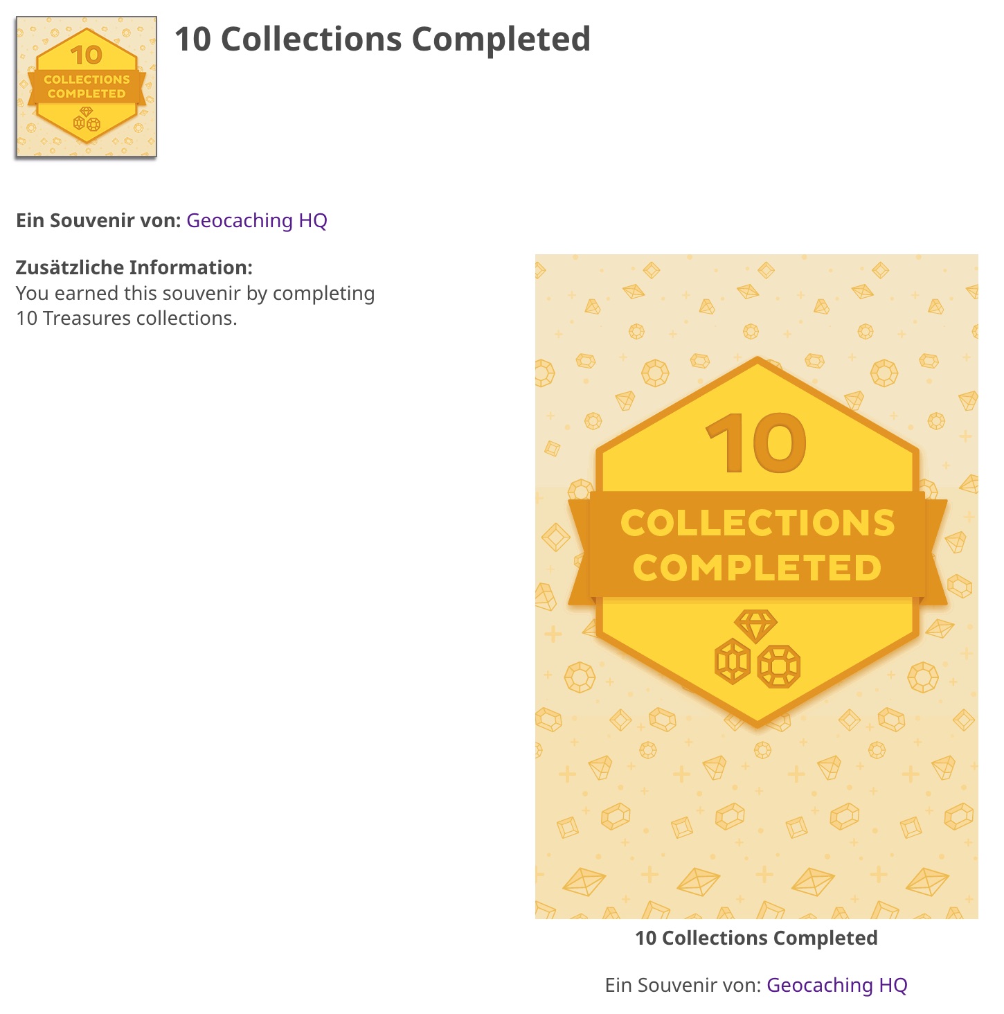 Und für die 19 Sammlungen, die ich bisher abschließen konnte, wurde mir dieses Souvenir zugeteilt.