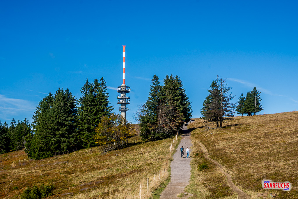 Da sich auf der Gipfelplattform viele Touristen befinden, verzichte ich auf einen Besuch. Die Frage des Labcaches „Feldberg : S5 Feldberg Panoramablick“ kann ich auch aus der Entfernung beantworten. Auch der Tradi „Der Höchste (FB-3 reloaded)“ ist schnell gefunden und geloggt.