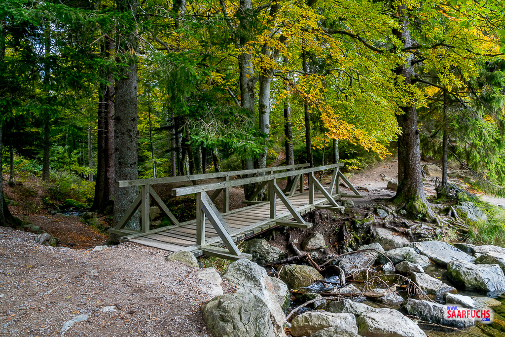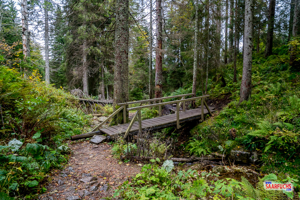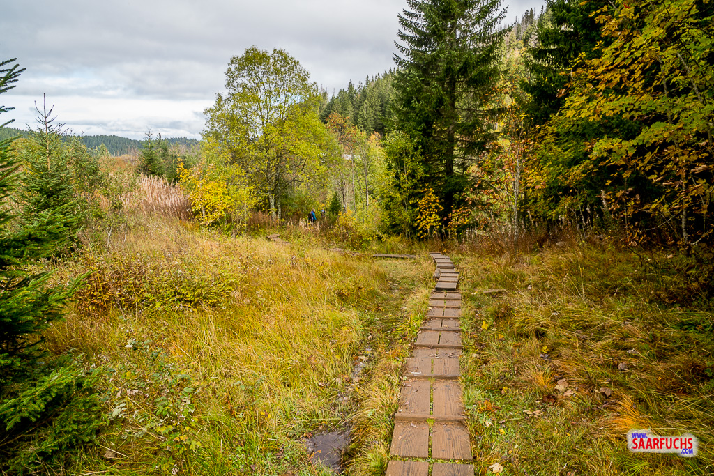 Kurz vor der Hütte verläuft mein Wanderpfad über Holzplanken. Diese überbrücken ein Moor.
