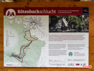 Der Genießerpfad Rötenbachschlucht im Hochschwarzwald ist ein echtes Highlight für Wanderfreunde und Geocacher. Erst im Jahr 2024 wurde der Weg vom Deutschen Wanderinstitut mit beeindruckenden 88 Punkten zertifiziert. Besonders spannend für alle, die gerne abseits breiter Forstwege unterwegs sind: Der Pfadanteil liegt bei stolzen 57 Prozent. Offiziell wird die Tour vom Wegbetreiber mit einer Länge von 10,98 Kilometern und rund 275 Höhenmetern angegeben. Bei einem Schwierigkeitsgrad von schwer gibt er die reine Wanderzeit mit vier Stunden an.