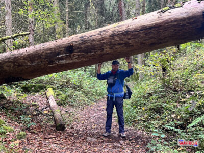 Ein besonderes Highlight auf dem Weg war ein riesiger, umgefallener Baum, unter dem ich hindurchschlüpfen musste. t.
