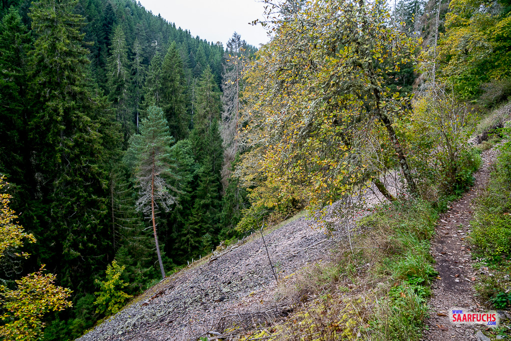 Kurz hinter dieser Stelle biege ich wieder nach rechts in einen schmalen Wanderpfad ein.