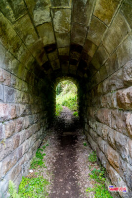 Auf dieser Strecke bewältige ich die ersten 90 Höhenmeter. Dann erreiche ich einen kleinen Tunnel. Der führt unter den Bahngleisen hindurch.