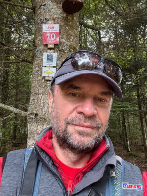 An der letzten Kilometermarkierung, der Nummer 10, halte ich kurz inne und mache ein Selfie als Erinnerung an diese Etappe.