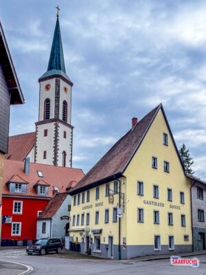 Etwas weiter hatte ich einen fantastischen Blick auf das Gasthaus Sonne mit der beeindruckenden St. Michael Kirche im Hintergrund.