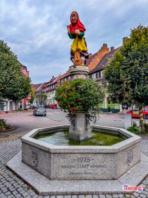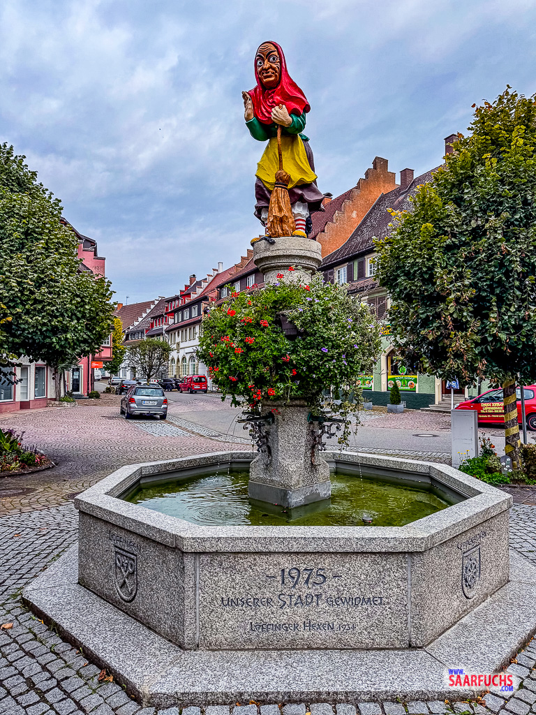 Gegen Ende meine Runde komme ich am Fastnachtsbrunnen mit der großen Hexe vorbei.