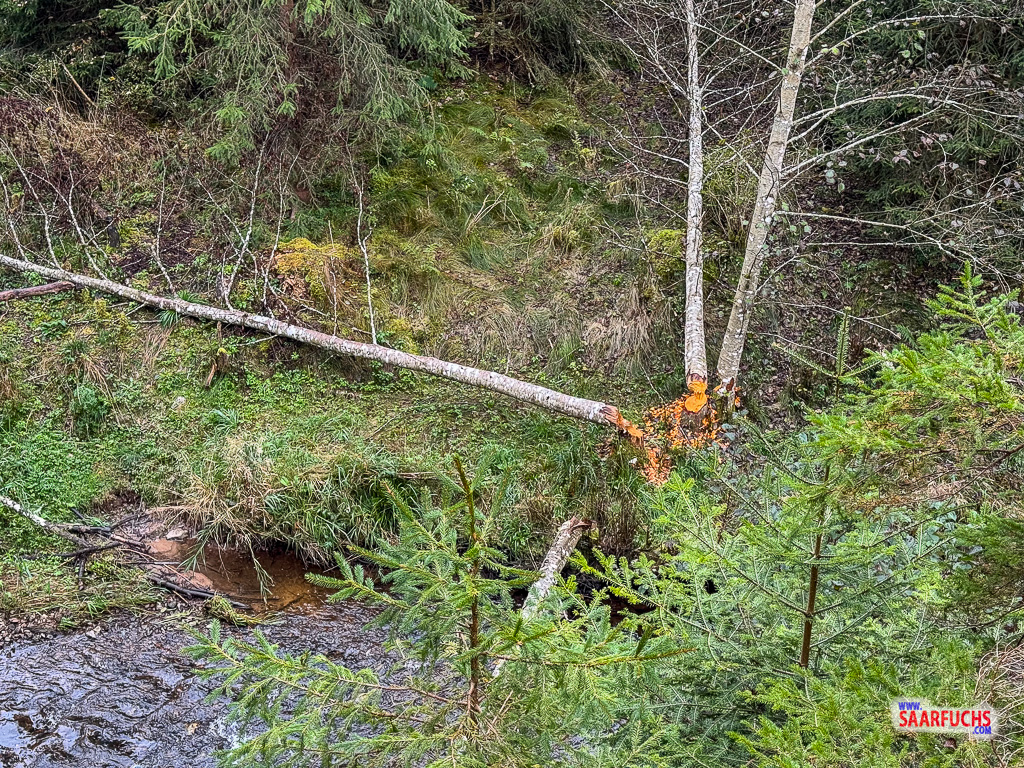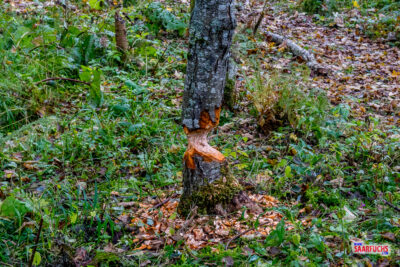 Von den Tieren selbst habe ich bei meinem Besuch zwar nichts gesehen, aber die Fraßspuren an den Bäumen verraten deutlich, dass die fleißigen Nager hier ihr Revier haben.