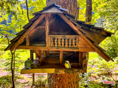 Etwas weiter und einige Funde später erreiche ich erneut eine ganz besondere Dose, bei der das Versteck in einem liebevoll selbst gezimmerten Vogelhaus untergebracht ist, was einmal mehr beweist, dass sich Krachsepp bei dieser Runde wirklich große Mühe gibt.