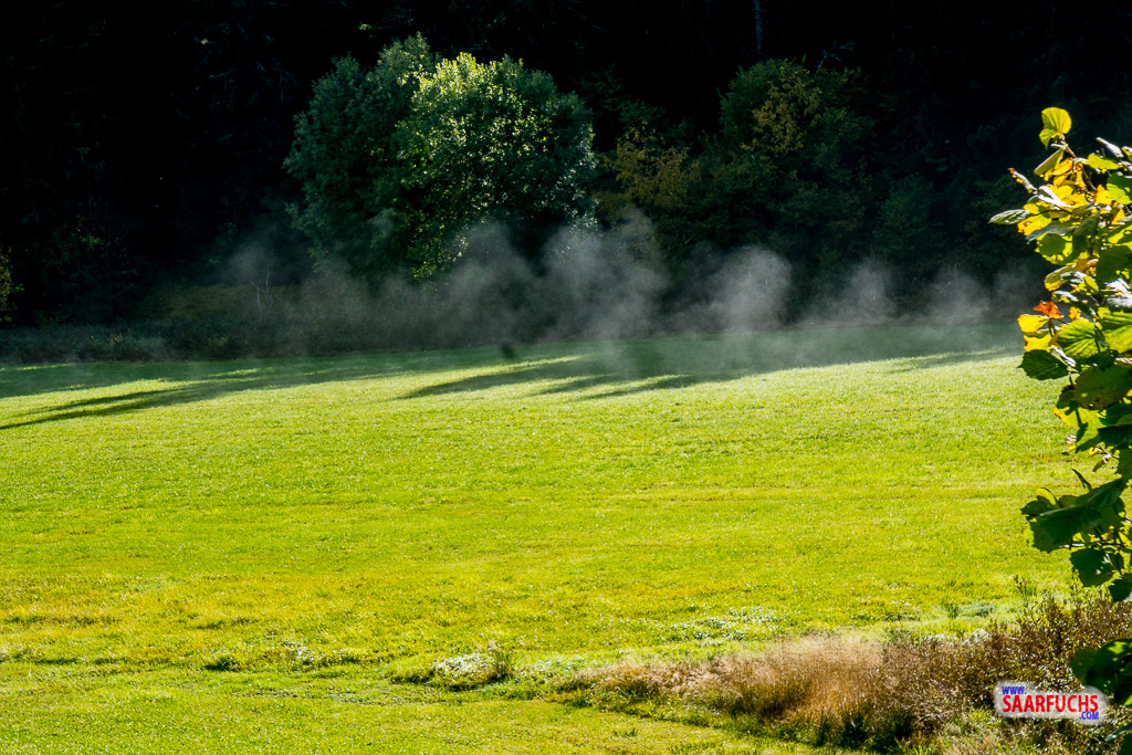 … wobei die mittlerweile stark scheinende Sonne für eine fast schon mystische Atmosphäre sorgt, da am Übergang von Licht zu Schatten die Feuchtigkeit als feine Wolken zum Himmel steigt.