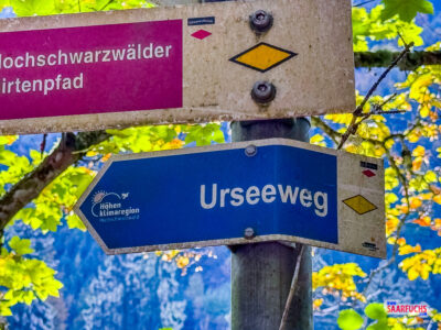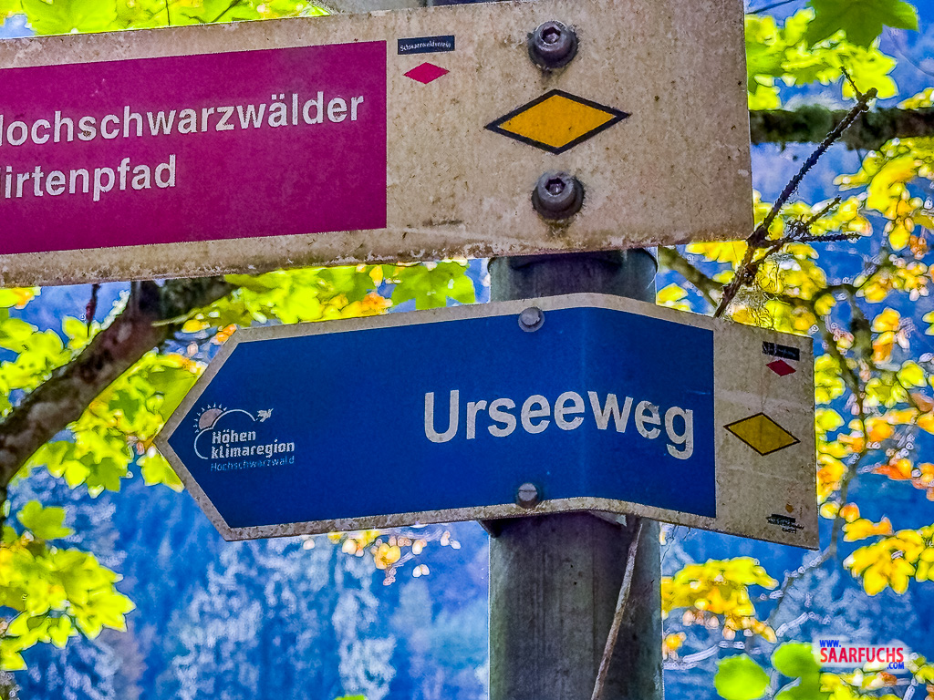 An der nächsten Abzweigung treffe ich auf den Premiumwanderweg Hochschwarzwälder Hirtenpfad, der als Genießerpfad zertifiziert ist und an die historische Waldweidewirtschaft der Hirtenbuben erinnert, und teile mir mit ihm ein kurzes Wegstück meines Pfades durch das eiszeitliche Relikt des Urseetals.