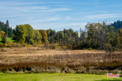 Danach öffnet sich die Landschaft ein wenig und ich laufe an einer weiten Wiese entlang, …