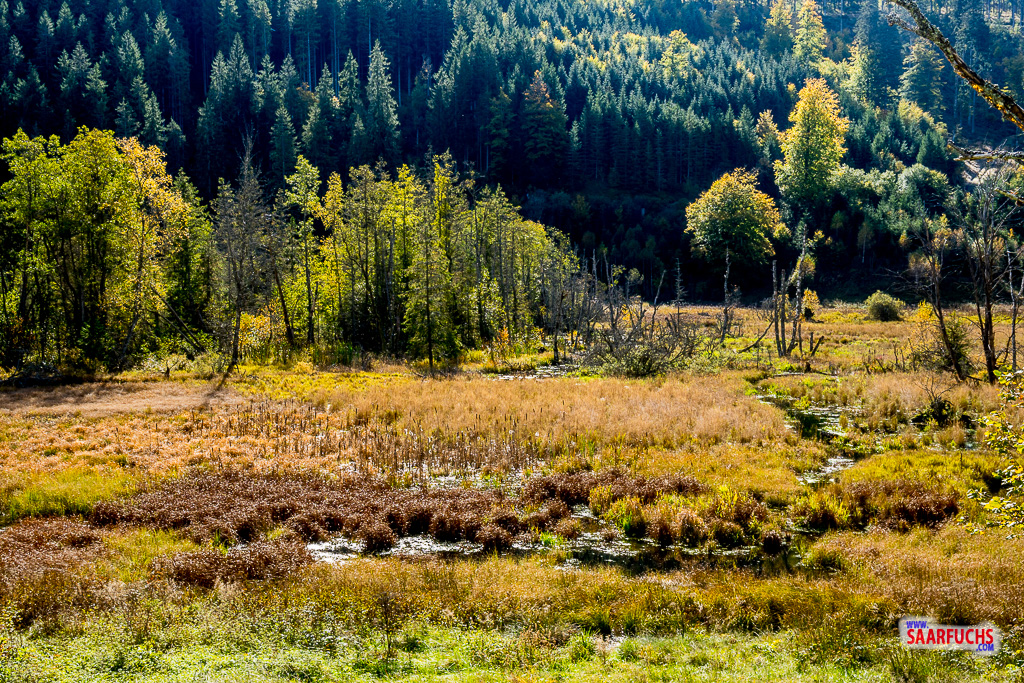 Da es mir noch viel zu früh zum Rasten ist, setze ich meine kleine Wanderung durch das faszinierende Gebiet rund um das Urseehochmoor fort. Da die Abstände zwischen den einzelnen Dosen der von krachsepp angelegten Runde im Allgemeinen recht kurz sind, kann ich gleich nach der nächsten Dose schauen, die ich schnell finde.