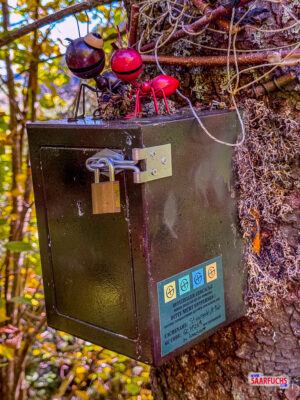 Schnell stellt sich jedoch heraus, dass dies nur ein geschickt platzierter Hinweis auf das eigentliche Ziel der Letterbox ist, also befolge ich die Anweisungen und werde schließlich an einem Baum fündig.