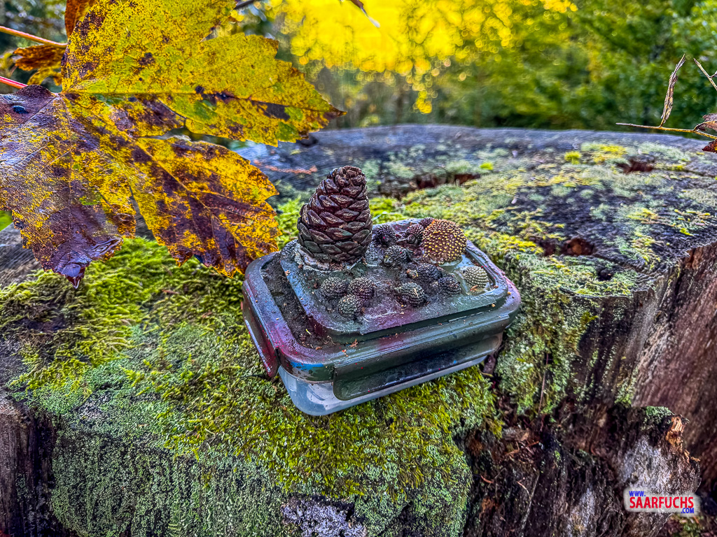 Ich parke nun mein Cachemobil um und fahre direkt zu den berechneten Koordinaten des Bonuscaches, der den krönenden Abschluss dieser abwechslungsreichen Runde im Schwarzwald bildet. Dort angekommen, kann ich mein Auto glücklicherweise ganz mühelos abstellen und mache mich sofort an die Suche. Nach nur kurzer Zeit werde ich tatsächlich fündig und halte erneut eine ganz besondere Dose in der Hand.